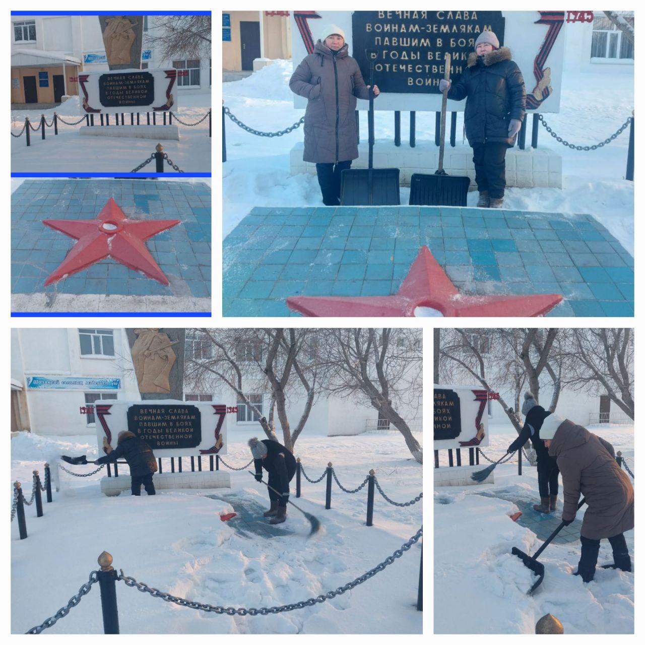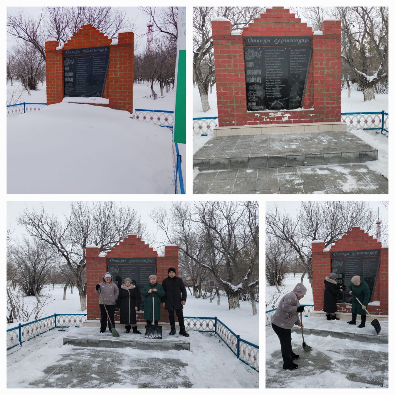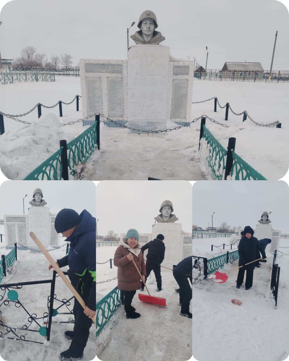 "Таза Қазақстан" акциясы аясында «Отанды қорғағандар» атты Ұлы Отан соғысшы жауынгерлеріне арналған ескерткішті қар құрсауынан тазалау мақсатында тазалық жұмыстары ұйымдастырылды. Игі шараға ауыл кітапханашысы мен мәдениет үйінің қызметкерлері бірлесе қатысып, ескерткіш маңын қардан аршып, айналасын ретке келтірді. |