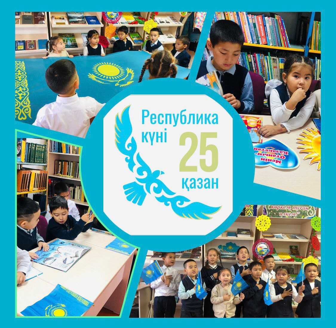 “Жасай бер, Қазақ елім,туған жерім!” Мероприятия начали с исполнения государственного гимна РК. Был проведен краткий экскурс в историю Казахстана. Были прочитаны стихи о родине,о родном крае. Вниманию детей была предложена книжная выставка “Ұлы Дала елі”, где представлены книги, раскрывающие исторические вехи развития нашего государства.